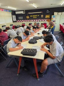 Today we went back to Tech, we had gotten split up into groups during the morning, there were 4 groups I’m assuming and I was in the group 8A my group were doing Text Tiles which is in other words Text Tiles also means sewing. When we got on the bus we headed our way to Tamaki College which is where our Tech takes place, we got out of the bus then formed into our groups and headed to our classes. As soon as we got into the class we all sat down then our teacher handed all of us a book a pencil and a rubber on the front of the page it had name and school. I wrote my school and my name then we turned the page it said we could design a bag for someone but on the page it said Person 1 to 4 and we had to write the four special people we were going to make the bag for out of the 4 people. So then I wrote my Mum, Dad, Myself and my friend who was suprisingly sitting next to me in class. After our Tech teacher announced that we have to do sewing exercises I’m not sure about how much paper excersices we had to use the sewing machine because the sewing machine had a cover so I uncovered it and put it on the back of my chair and then our teacher started to go through on how to use the sewing machine, it was fun because we got to learn about so much of the parts on and in the machine. While I was doing my excersices we had to follow along the line on the paper so it could make a masterpiece when you look at the back it would be just little dots on the back that made lines to create a masterpiece. After that we had to pack up and turn the sewing machine off and put the cover back on, then we had to place our books in plastic bags and seal them up so that they wouldn’t fall off. As a result we had to put them in the box until we come back till next week. This experience was something fun to come back to I loved this experience and I cant wait for other Year 7’s and 8’s to have this experience I hope they would love this. Here is some pictures of my class at Tech